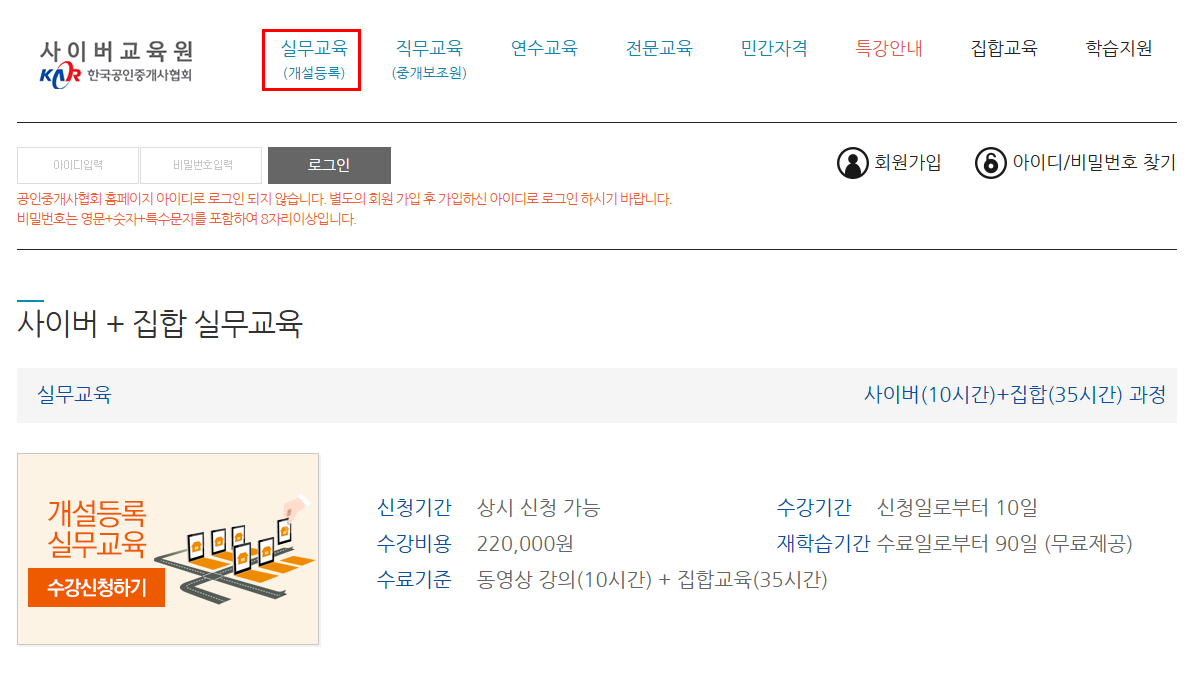 연수교육은 등록된 공인중개사 사무소가 위치한 지역에서만 수강이 가능합니다. |